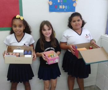 Para a confecção da maquete, utilizaram caixa de sapato e sucata.