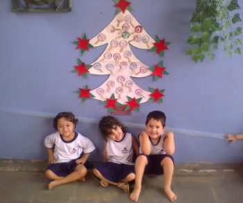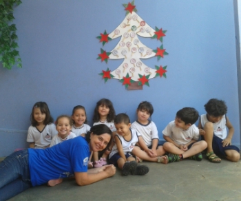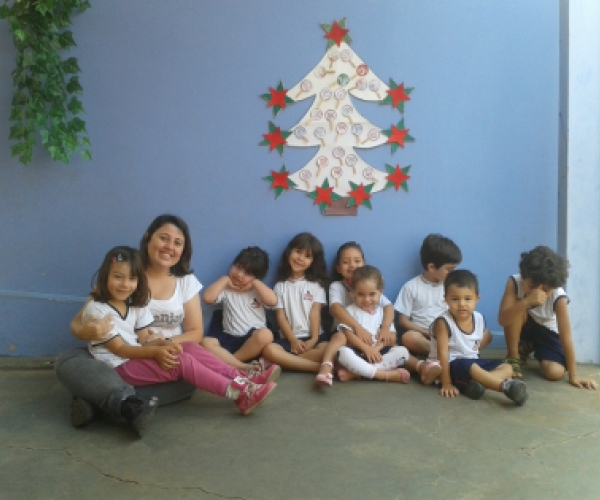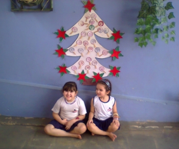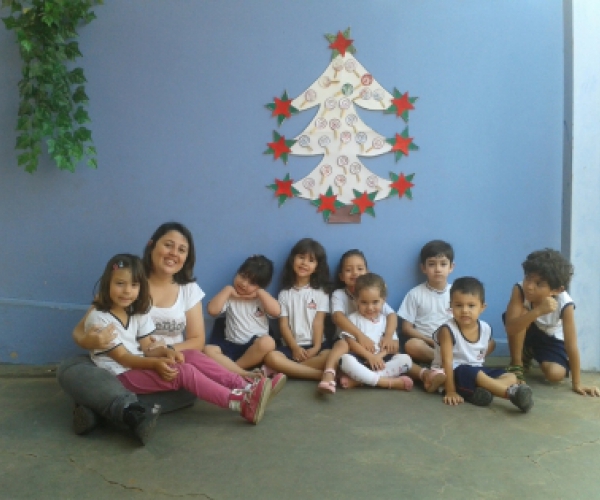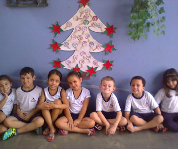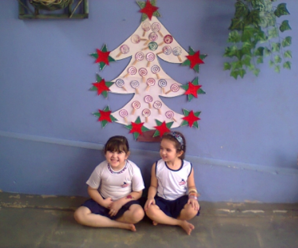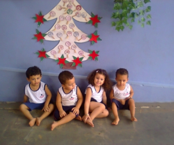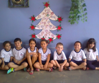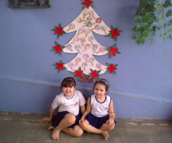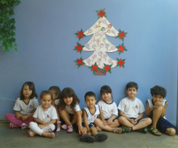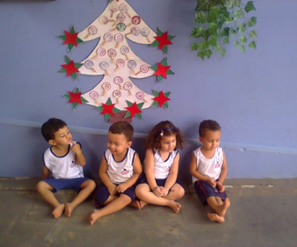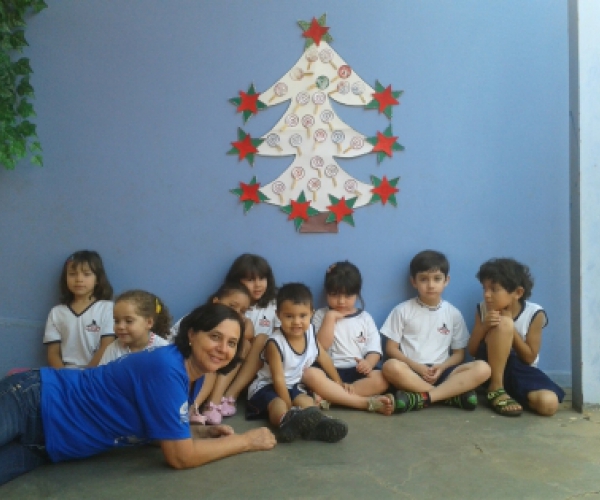 Com o natal se aproximando os alunos da Educação Infantil do período da manhã com a Prof. Edina e Fernanda e do período da tarde Prof. Maria Alice, confeccionaram uma árvore de natal para deixar a área de recreação no clima do natal.