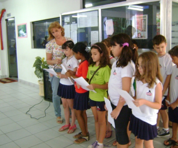 Os alunos da Educação Infantil e Fundamental I fizeram uma homenagem no dia 08/03/12 para o Dia da M