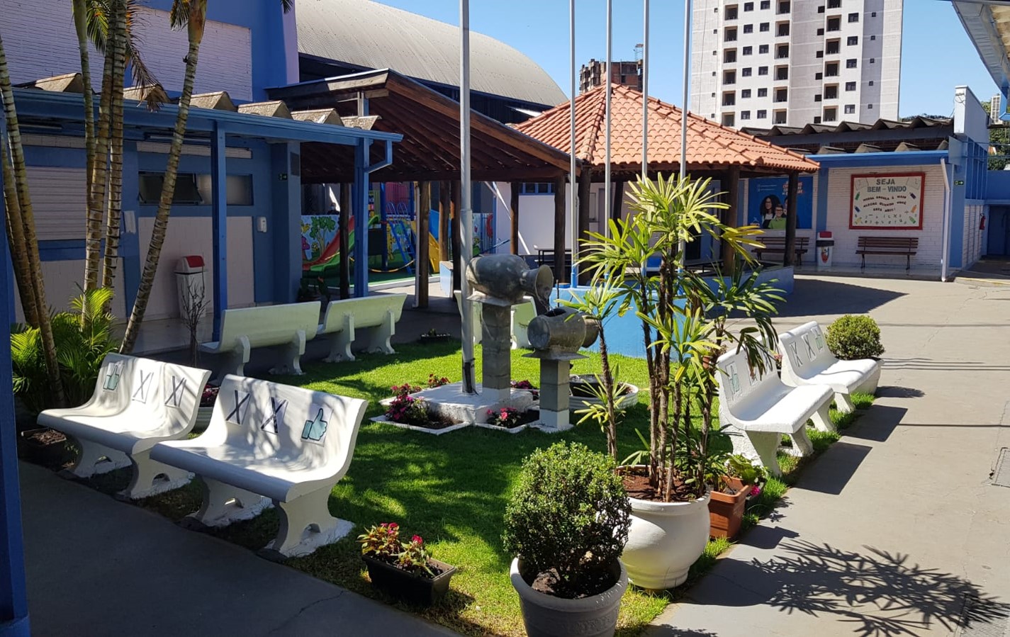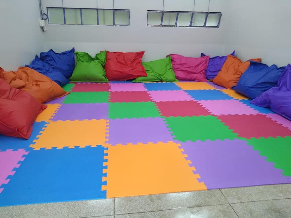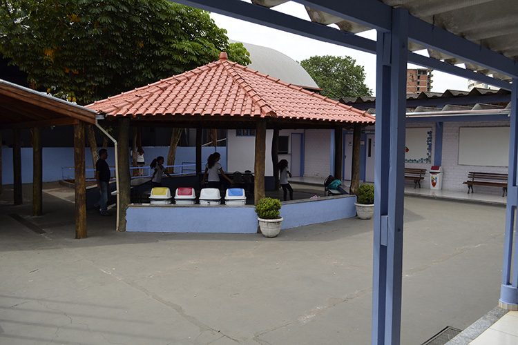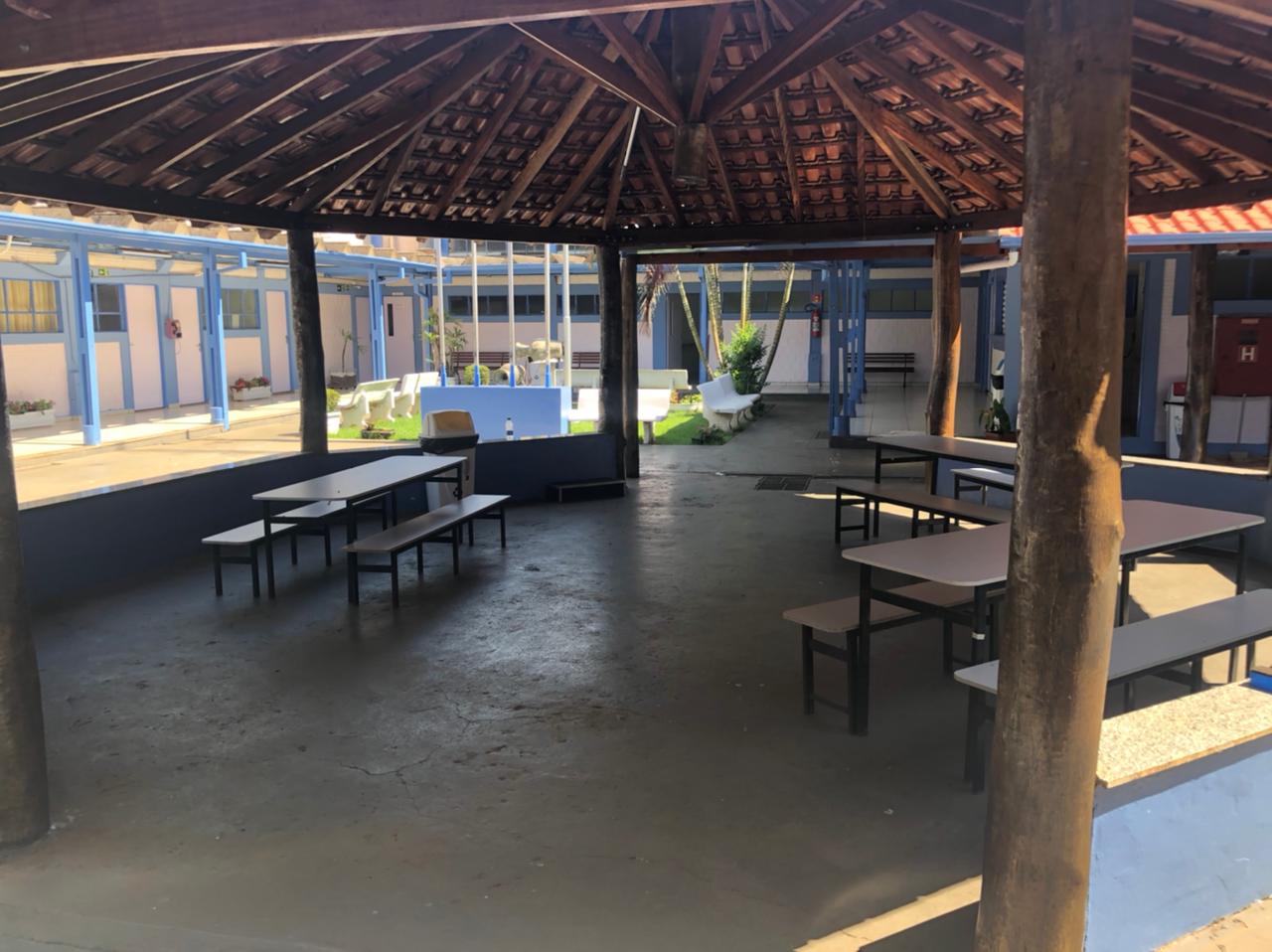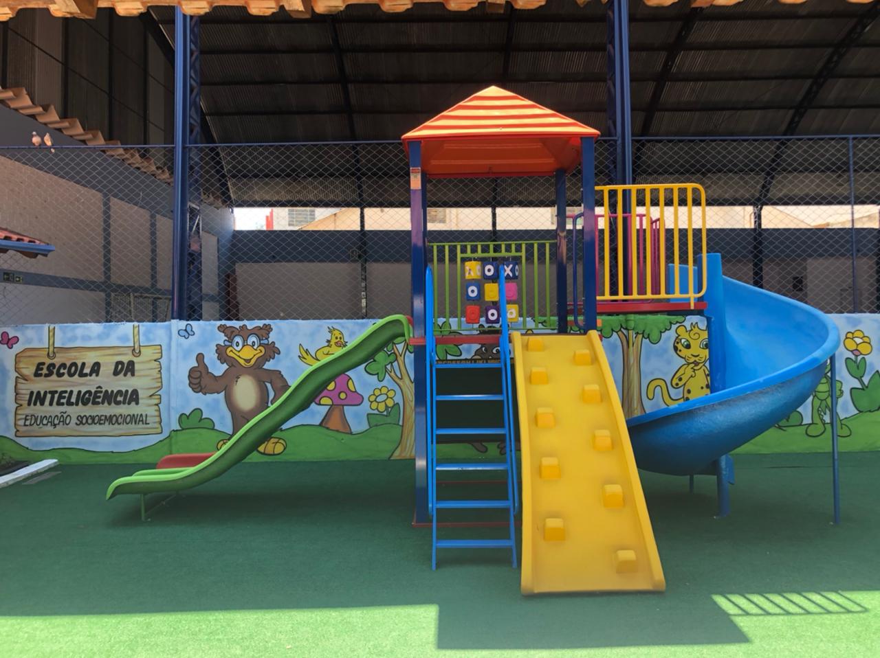 A quadra de esportes do Preve Objetivo é coberta, o que possibilita a realização e aprendizagem de vários jogos.