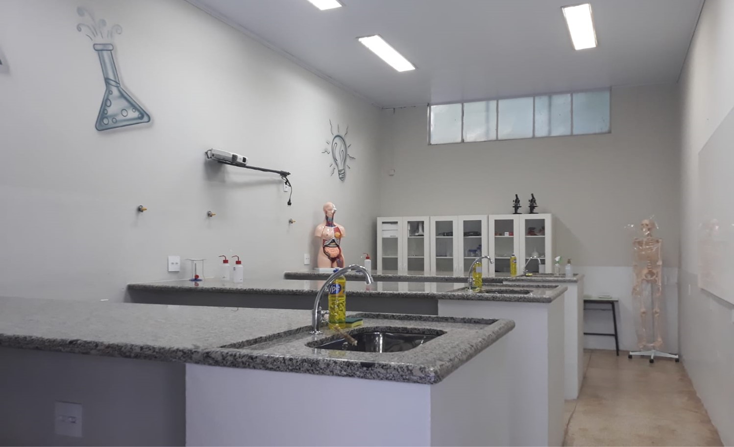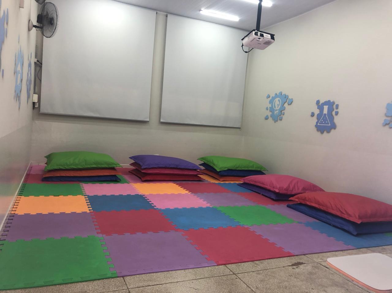 Salas de aula amplas com ar-condicionado e som.