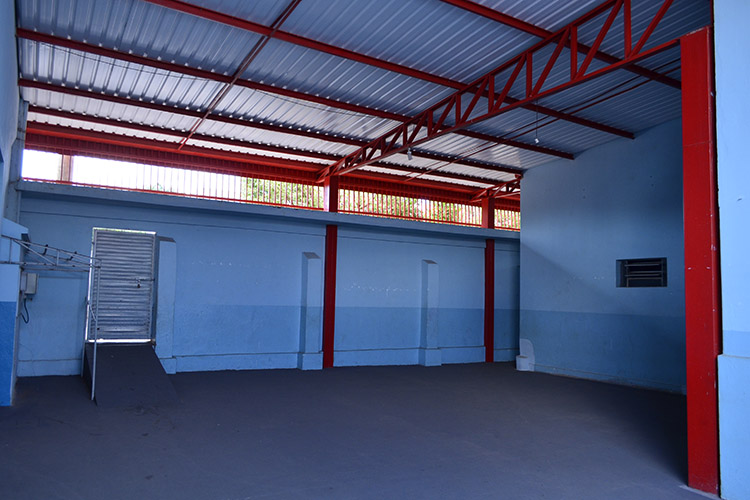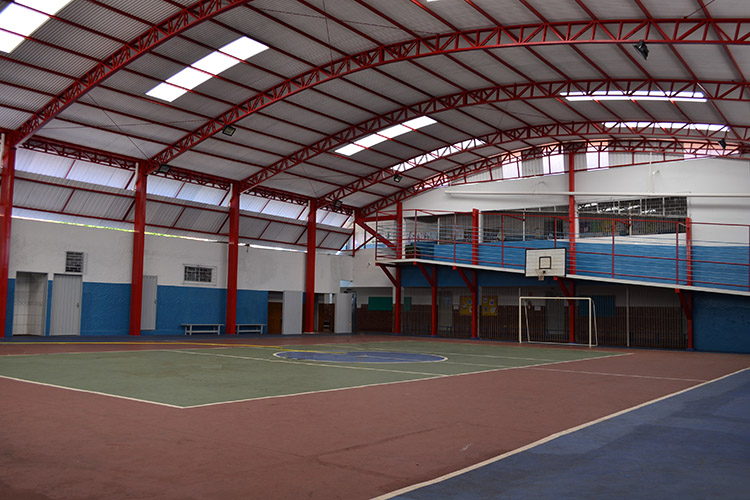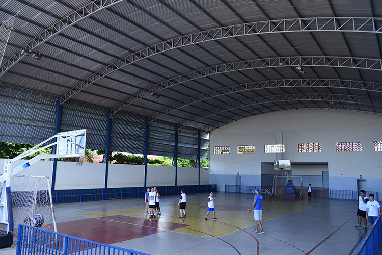 A escola dispõe de duas quadras poliesportivas, sendo uma delas totalmente coberta e com piso de granito.