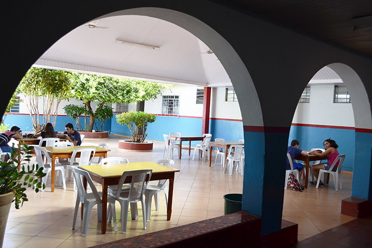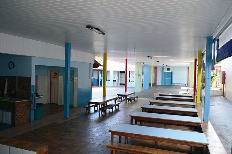 Os alunos contam com um amplo e arejado pátio para o intervalo.