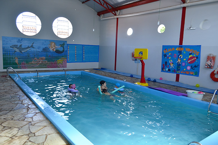 A escola possui uma piscina aquecida e coberta, bem como hidroginástica para alunos e não alunos.